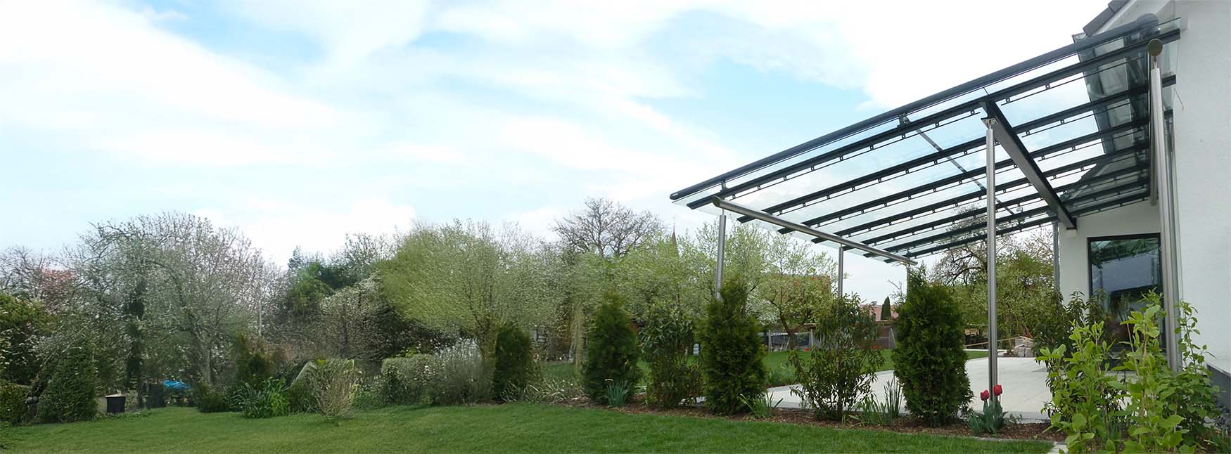 Terrassendach mit seitlicher Wetterschutz-verglasung