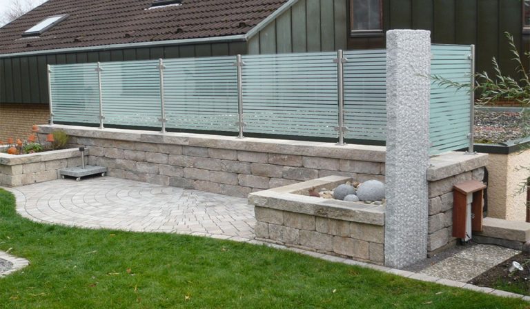 Glas-Sichtschutz bietet Schutz vor Wind und neugierigen Blicken, ohne die Helligkeit einzuschränken. Satiniertes oder getöntes Glas sorgt für eine elegante und langlebige Lösung.